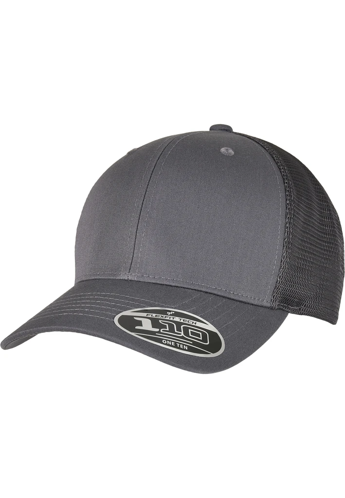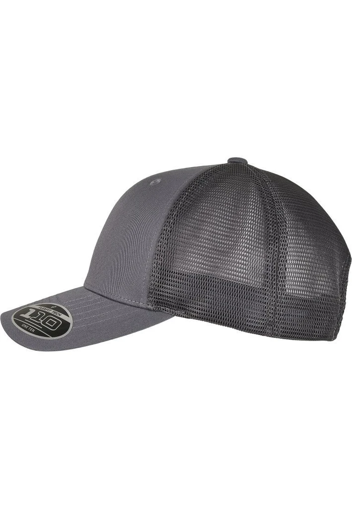Diese Trucker Cap bietet ein bewährtes, duales Design: Die Vorderseite besteht aus Baumwolle, die Rückseite aus transparentem, weißem Polyester-Mesh. Dank der smarten, integrierten Technik garantiert die Cap optimalen Tragekomfort: Neben dem Flexfit-Band steht ein farblich passender Snapback-Verschluss zur individuellen Größenanpassung bereit. Abgerundet wird der Truckercap-Style durch einen vorgebogenen Schirm mit acht Ziernähten.