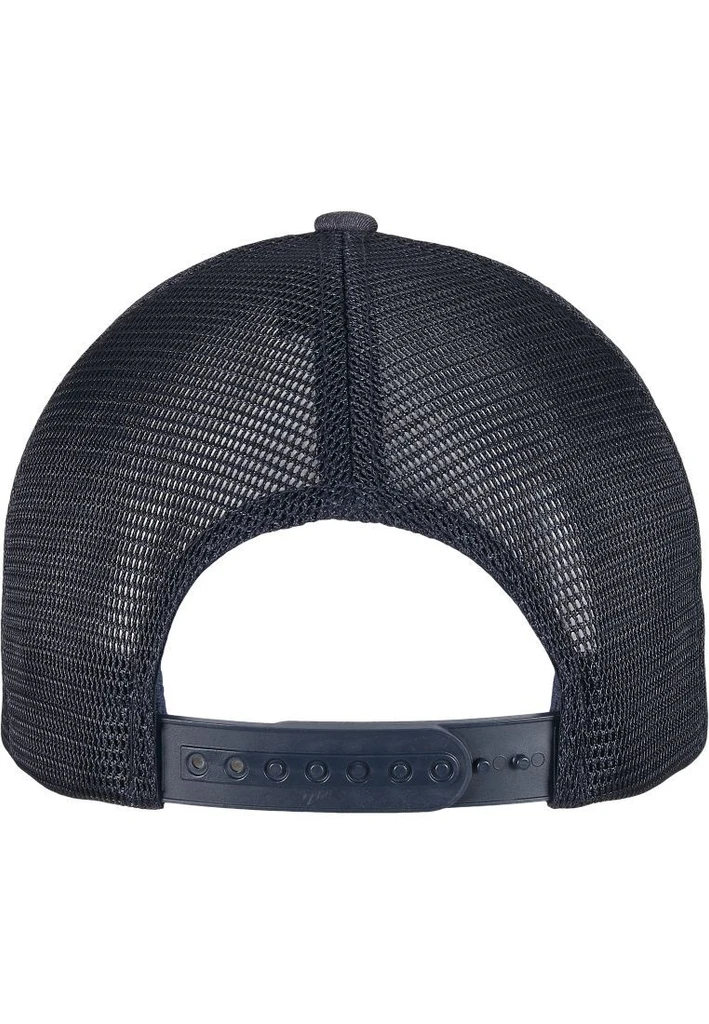 Diese Trucker Cap bietet ein bewährtes, duales Design: Die Vorderseite besteht aus Baumwolle, die Rückseite aus transparentem, weißem Polyester-Mesh. Dank der smarten, integrierten Technik garantiert die Cap optimalen Tragekomfort: Neben dem Flexfit-Band steht ein farblich passender Snapback-Verschluss zur individuellen Größenanpassung bereit. Abgerundet wird der Truckercap-Style durch einen vorgebogenen Schirm mit acht Ziernähten.