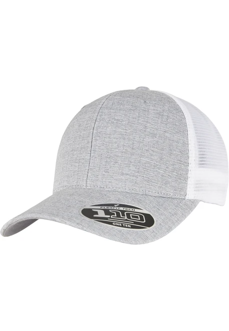 Diese Trucker Cap bietet ein bewährtes, duales Design: Die Vorderseite besteht aus Baumwolle, die Rückseite aus transparentem, weißem Polyester-Mesh. Dank der smarten, integrierten Technik garantiert die Cap optimalen Tragekomfort: Neben dem Flexfit-Band steht ein farblich passender Snapback-Verschluss zur individuellen Größenanpassung bereit. Abgerundet wird der Truckercap-Style durch einen vorgebogenen Schirm mit acht Ziernähten.