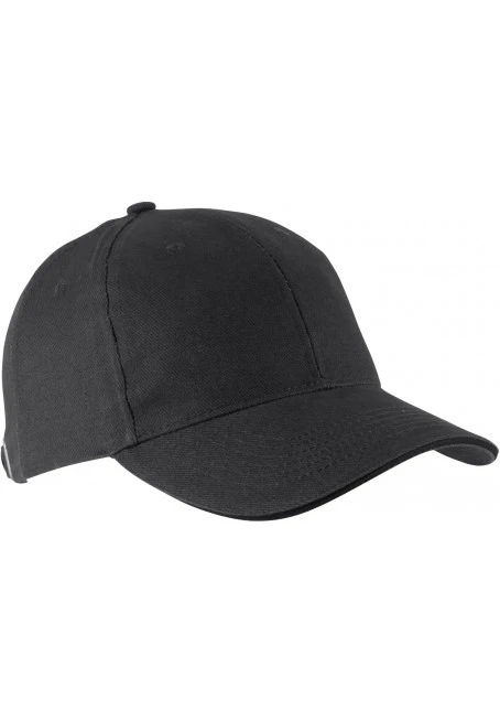 100% stark gebürstete Baumwolle. Schirm vorgeformt. Klemmverschluß.
