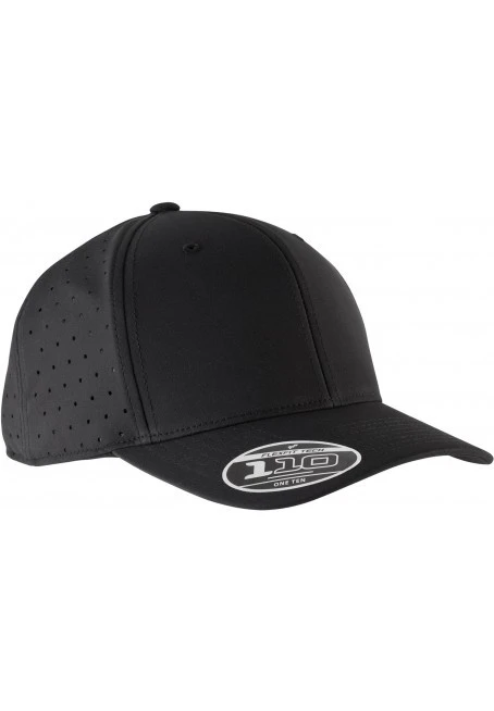 92 % Polyester / 8 % Elasthan. 6 Felder. Gebogener Schirm und Innenverstärkung auf den vorderen Feldern für Formbeständigkeit. Flexfit® Cool & Dry Technologie für mehr Komfort und optimale Feuchtigkeitsaufnahme am elastischen Innenband. Laser-Perforierungen an den seitlichen und hinteren Feldern. Größenverstellbar durch hinteren Klettverschluss.