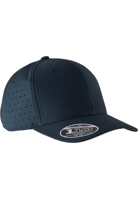 92 % Polyester / 8 % Elasthan. 6 Felder. Gebogener Schirm und Innenverstärkung auf den vorderen Feldern für Formbeständigkeit. Flexfit® Cool & Dry Technologie für mehr Komfort und optimale Feuchtigkeitsaufnahme am elastischen Innenband. Laser-Perforierungen an den seitlichen und hinteren Feldern. Größenverstellbar durch hinteren Klettverschluss.