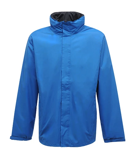 Wasserdichtes Hydrafort 5000-beschichtetes Peached-Polyester, Polyester-Netzfutter, winddichtes Gewebe, verschweißte Nähte, verdeckte Kapuze mit Regulierer, 2 untere Reißverschlusstaschen, 1 Innentasche mit Kopfhörerkabelzugang, verstellbare Ärmelbündchen, verstellbarer Shockcord-Saum, interner Reißverschluss-Stickzugang