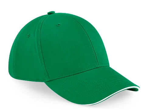 TearAway-Label für einfaches Rebranding, 6-Panel-Design, mittleres Profil, vorgekrümmter Schirm, Sandwich-Schirm in Kontrastfarbe, strukturierte Frontpanels, genähte Luftösen, selbes Gewebeband mit Tri-Glide-Schnalle