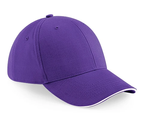 TearAway-Label für einfaches Rebranding, 6-Panel-Design, mittleres Profil, vorgekrümmter Schirm, Sandwich-Schirm in Kontrastfarbe, strukturierte Frontpanels, genähte Luftösen, selbes Gewebeband mit Tri-Glide-Schnalle