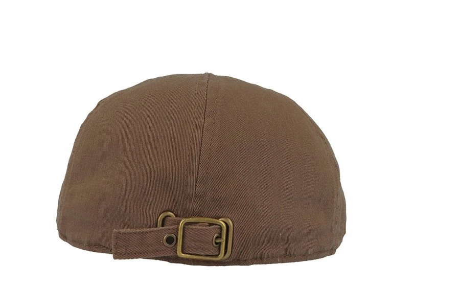 Diese aktualisierte Version der Gatsby-Mütze besteht aus gewaschenem Chino-Stoff mit einem verstellbaren Riemen und einer Schnalle auf der Rückseite. Die Kappe sieht aus wie eine Baseballkappe.