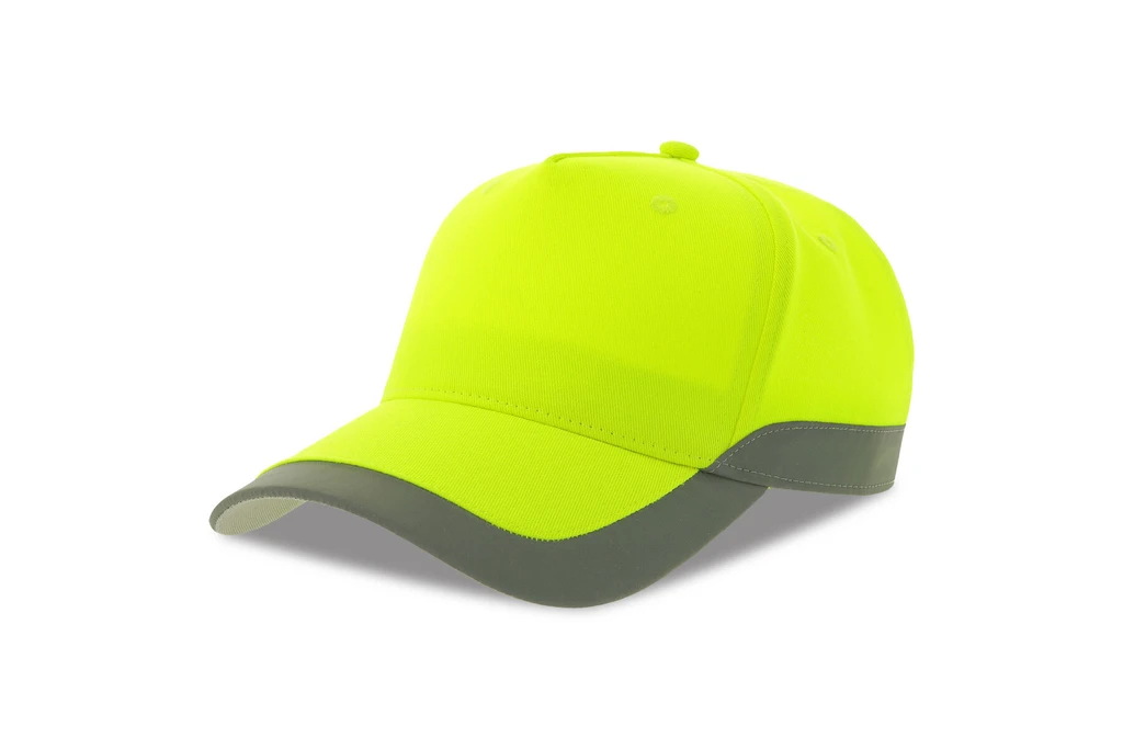 Wasserfeste Mütze mit hoher Sichtbarkeit, hergestellt aus recyceltem, reflektierendem Material, UV 50+ Schutz und einer PFC-freien, wasserabweisenden Behandlung. Die perfekte Lösung für alle, die Sicherheit bei schlechten Lichtverhältnissen oder maximaler Sonneneinstrahlung suchen. Der graue Unterschirm kontrastiert mit der fluoreszierenden Außenfarbe und sorgt für Sichtbarkeit, ohne die Augen zu belasten. Ideal zur Vervollständigung Ihrer Arbeitskleidung.
