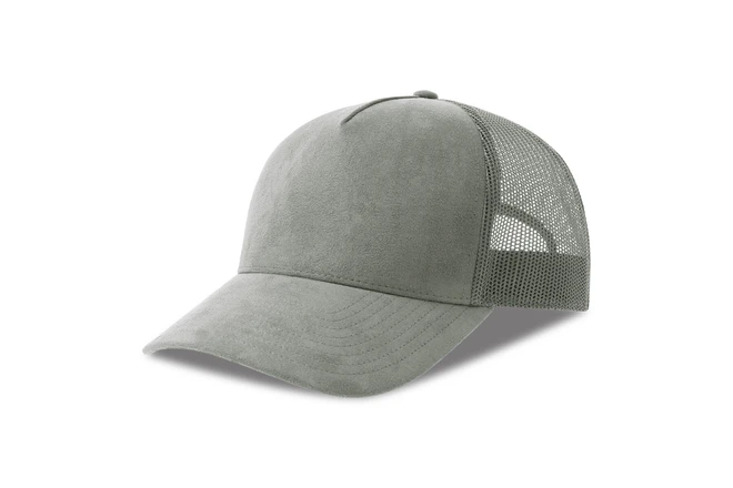Kann ein Trucker-Hut elegant werden? Wenn er mit einem Wildleder-Look gepaart ist, der ihm ein lässiges, elegantes Aussehen verleiht. Er besteht fast vollständig aus recyceltem Polyester und verfügt über einen recycelten Snapback-Verschluss und ein recyceltes ReTraze®-Visier.