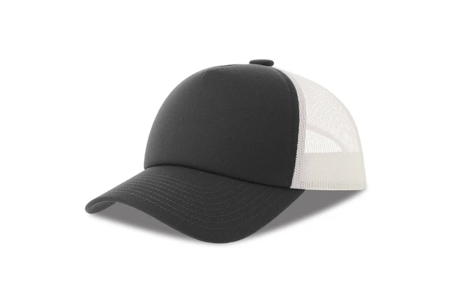 Ein Trucker-Hut, der dank seines gepolsterten Vorderteils und des übergroßen Knopfes zu einer Ikone der Streetwear geworden ist. Diese Kappe im urbanen Stil aus recyceltem Polyester mit Mesh-Anteil ist mit einem recycelten Snapback-Verschluss und einem recycelten ReTraze®-Schirm ausgestattet.