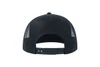 Es ist eine 6-Panel-Trucker-Version des Snap aus recyceltem Polyester-Twill, hat einen flachen Schirm und einen recycelten Snapback-Verschluss, der typisch für die Streetwear-Kultur ist.