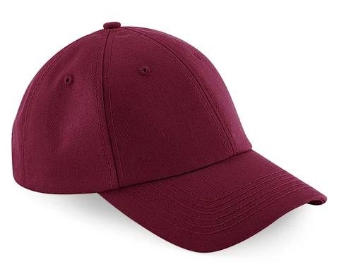 6-Panel-Design mit mittlerem Profil, TearAway-Label für einfaches Rebranding, vorgekrümmter Schirm, strukturierte Frontpanels, genähte Luftösen, selbsttragender Stoffriemen mit Triglide-Schnalle