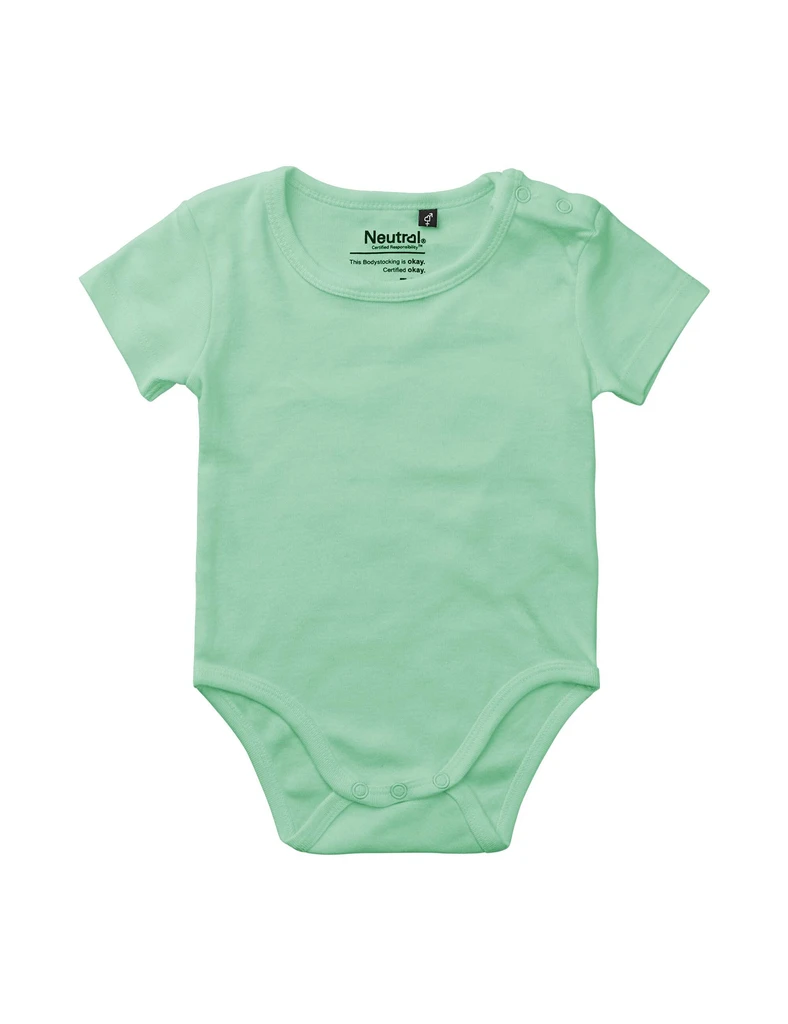 Material: 100% Bio-Fairtrade-Baumwolle, 1x1 Rippenstrick; Gewicht: 220 g/m²; Dehnbarer Rippenstrick, kurze Ärmel. Druckknöpfe an Schulter und Boden. Rippengestrickte Kanten an Hals- und Beinöffnungen; Zertifikate: OEKO-TEX® STANDARD 100, 100% CERTIFIED ORGANIC COTTON, FAIR WEAR, EU ECOLABEL, SA8000, NEUTRAL® RESPONSIBILITY