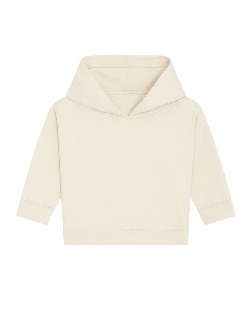 Material: 85 % ringgesponnene gekämmte Bio-Baumwolle, 15 % recycelt Polyester; Angesetzte Ärmel, doppellagige Kapuze aus Single-Jersey, breitere Halsöffnung für einfaches An- und Ausziehen, Nackenband innen aus Single-Jersey, Halbmond aus gleichem Stoff am Nacken, Einnadel-Steppnähte am Ausschnitt und entlang der Kapuzenöffnung, 1x1 Ripp am Ärmelsaum und unterer Saum, Ärmelsaum und unterer Saum mit Zwillingsnadel-Steppstich; Zertifikate: GOTS - Global organic textile standard, Fair wear, STANDARD 100 by OEKO-TEX®, Peta - Approved VEGAN