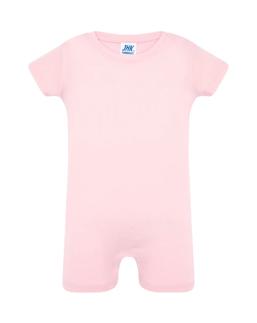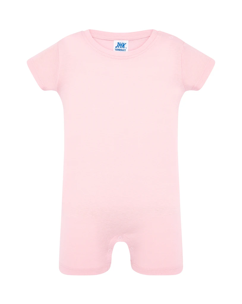 Kurzer Babyanzug mit kurzen Ärmeln, 100% Baumwolle. Ideal zum Personalisieren mit Siebdruck, Vinyl oder Transfer. Erhältlich in 5 Farben und von Größe 3 bis 12 Monate. Abnehmbarer Aufkleber.