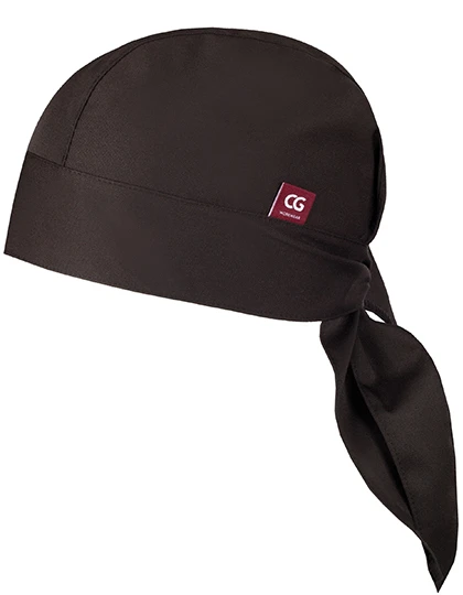 Kopftuch in trendiger Bandana-Form. Es ist durch Bänder in der Weite verstellbar und passt sich dadurch perfekt der Kopfform an. Der breite Bund sorgt für einen festen Sitz. Für optimale Hygiene bei 95° C waschbar.