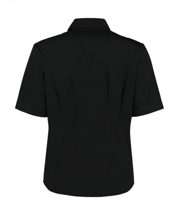 120 g/qm • 57% Baumwolle, 40% Polyester, 3% Elasthan • Pflegeleichte Kurzarm-Bluse • Leicht verstärkter Kragen • Ton-in-Ton Knöpfe • Abnäher auf Rücken und Vorderseite für taillierte Passform • Halbrunder Saumabschluss.