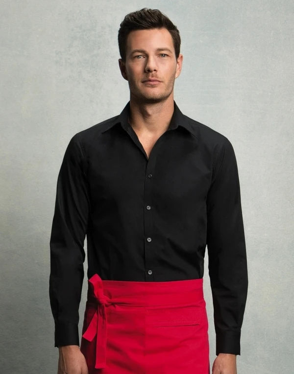 120 g/qm • 57% Baumwolle, 40% Polyester, 3% Elasthan • Pflegeleichtes Langarm-Hemd • Verstärkter Kragen • Ton-in-Ton Knöpfe • Verstellbare Manschetten • Halbrunder Saumabschluss.