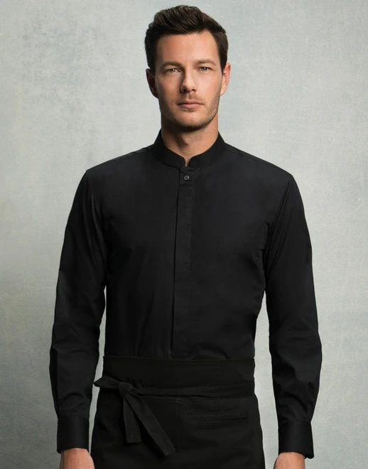 120 g/qm • 57% Baumwolle, 40% Polyester, 3% Elasthan • Pflegeleichtes Langarmhemd im Asia-Look • Kleiner Stehkragen • Schulterpasse mit 2 an den Seiten eingelegten Falten • Ton-in-Ton Knöpfe • Verdeckte Knopfleiste (nur oberster Knopf ist sichtbar) • Verstellbare Manschetten • Halbrunder Saumabschluss.