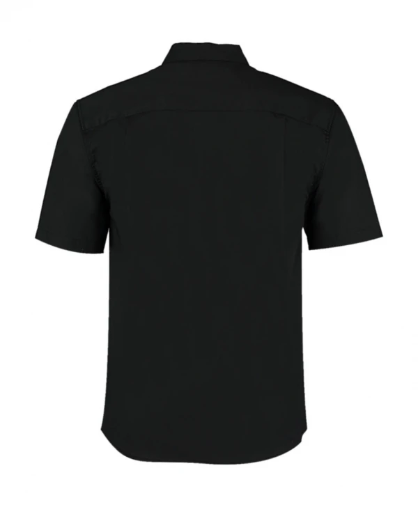 120 g/qm • 57% Baumwolle, 40% Polyester, 3% Elasthan • Pflegeleichtes Kurzarm-Hemd im Asia-Look • Kleiner Stehkragen • Schulterpasse mit 2 an den Seiten eingelegten Falten • Ton-in-Ton Knöpfe • Verdeckte Knopfleiste (nur oberster Knopf ist sichtbar) • Halbrunder Saumabschluss.