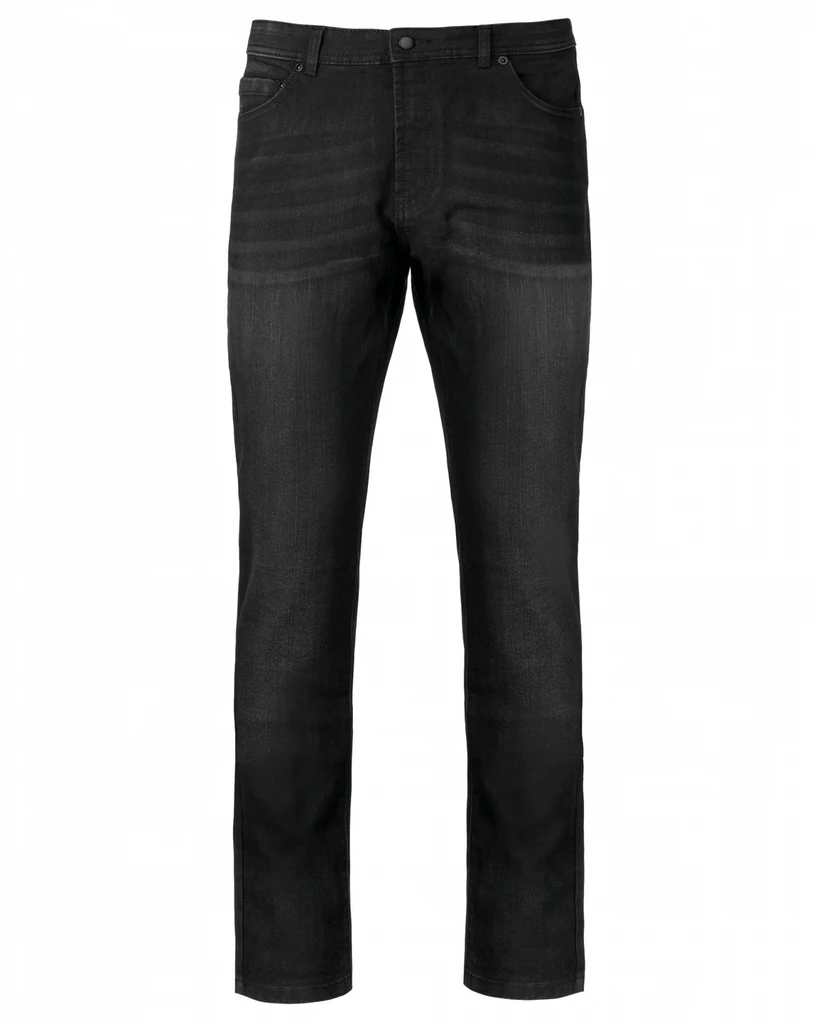 74 % Baumwolle / 25 % Polyester / 1 % Elasthan. 11,25 oz. Reißverschluss mit farblich abgestimmtem Metallknopf. 2 Vordertaschen und eine Tickettasche. 2 aufgesetzte Gesäßtaschen. Farblich abgestimmte Nähte. Waschung mit leichten Sitzfalten. Bund mit Gürtelschlaufen. Moderner und bequemer Schnitt.
