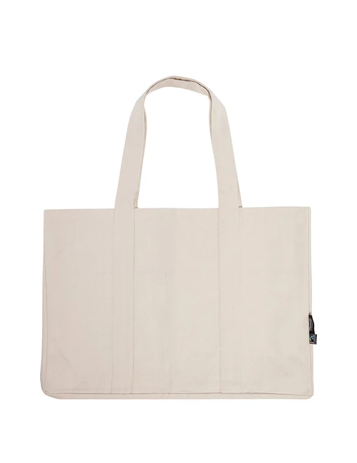 Große Einkaufstasche mit langen Henkeln, Innentasche (24 cm x 21 cm). Diese Tasche ist aus unserer neuen und besonders schweren 300 g/m² Panama-Webqualität gefertigt und verfügt über einen YKK-Reißverschluss sowie seitliche Neutral®- und Fairtrade-Flaggenetiketten