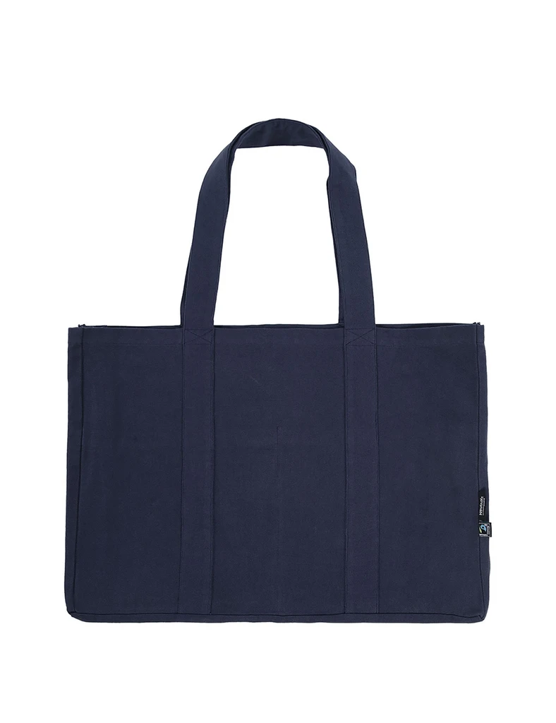 Große Einkaufstasche mit langen Henkeln, Innentasche (24 cm x 21 cm). Diese Tasche ist aus unserer neuen und besonders schweren 300 g/m² Panama-Webqualität gefertigt und verfügt über einen YKK-Reißverschluss sowie seitliche Neutral®- und Fairtrade-Flaggenetiketten