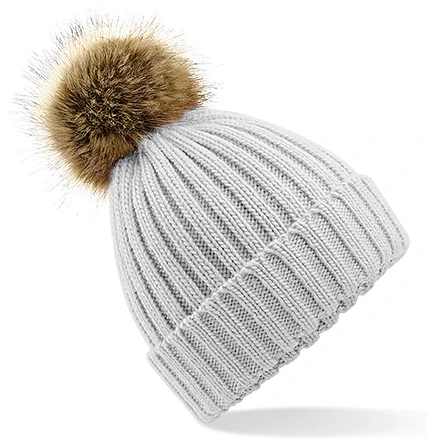 Chunky Beanie aus Kunstpelz mit Pop-Pom