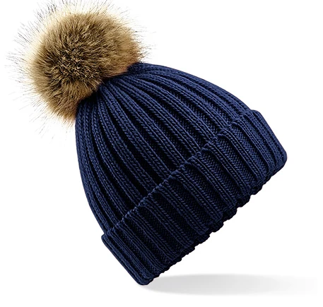 TearAway-Label für einfaches Rebranding, Unisex-Styling, Bündchen-Design für optimale Dekoration, üppiger, schwerer Rippstrick, luxuriöser abnehmbarer Kunstpelz-Bommel für einfaches Waschen