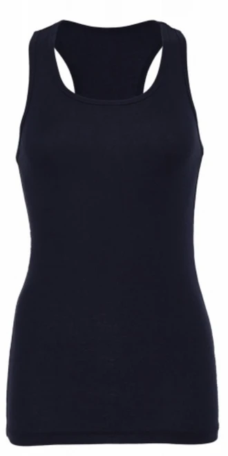 135 g/qm • 98% Baumwolle, ringgesponnen und gekämmt, 2% Elasthan • Sehr weiche Qualität • Racerback Shirt (Rücken im Stil eines Ringertrikots) • Mit schmalen Rippstrickbündchen eingefasster Hals- und Ärmelausschnitt • Figurbetonter Schnitt.
