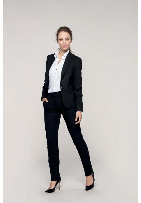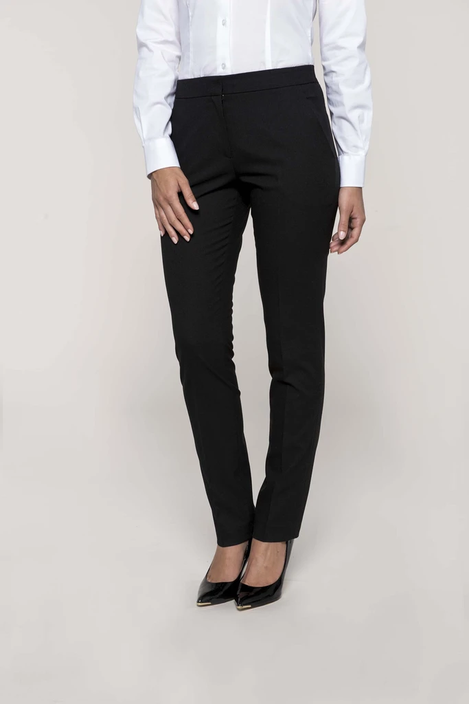 64 % Polyester / 34 % Viskose / 2 % Elasthan. Körpernah geschnittene Hose. 2 schräge Taschen vorne und 2 Gesäßtaschen mit Paspel. Hosenschlitz mit Reißverschluss, Haken und verdecktem Knopf. Bund mit Gummiband hinten für bequemen Sitz. Innenbeinlänge: 78 cm. Beinenden mit unsichtbarem Saum.