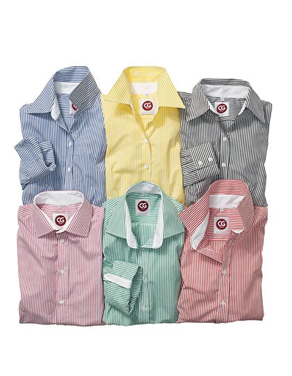 Streifen sind in der Mode immer ein Thema, weil sie sich vielseitig kombinieren und variieren lassen. Das gilt auch für Berufsbekleidung. Ein gestreiftes Hemd oder Bluse kann, je nach Styling und Farbe, sowohl modern als auch lässig oder edel aussehen. Labico bekommt zusätzlich einen frischen Touch durch den weißen Innenkragen. Die Bluse ist tailliert, mit Abnähern vorne und hinten, und hat einen abgerundeten Saum. 60° C waschbar, bügelfrei, farbecht, industriewäsche- und finishertauglich.