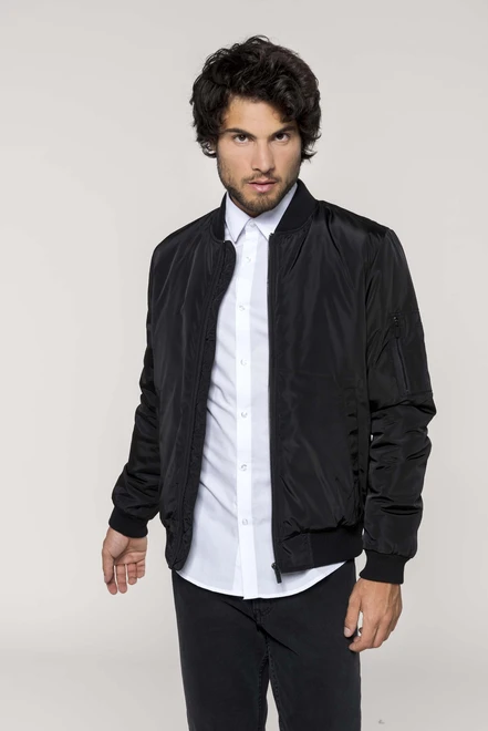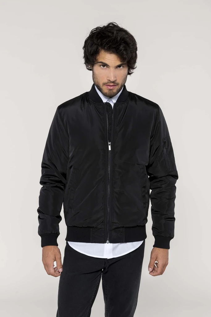 100 % Polyester. Gestepptes Futter aus 100 % Polyester. Reißverschluss. 2 Paspeltaschen an der Vorderseite. Aufgesetzte Tasche mit Reißverschluss und Stiftfach am linken Ärmel. Paspeltasche innen. 2x2-Strickbündchen an Kragen, Ärmeln und Saum. 1 Reißverschluss an der Brusttasche und 1 Reißverschluss am Saum zur Veredelung.