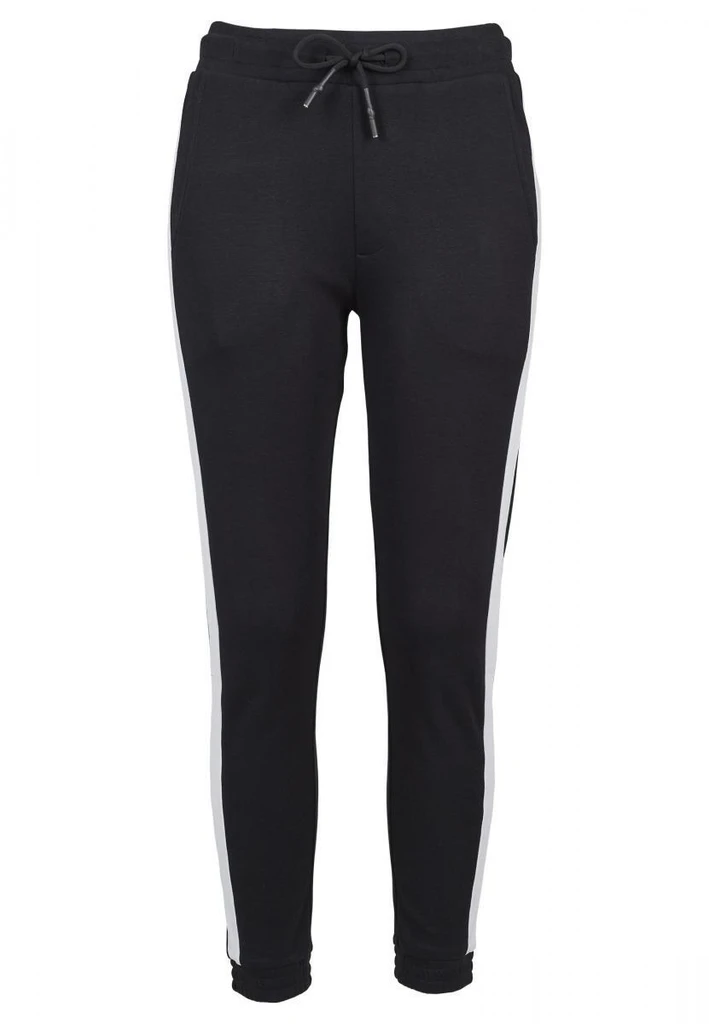 Über die gesamte Seitennaht eingesetzte Kontraststreifen
