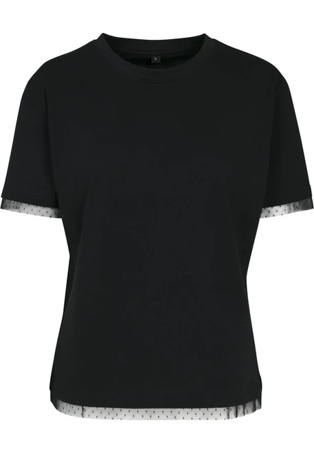 Robuste Spitzenapplikation an Ärmeln und Saum