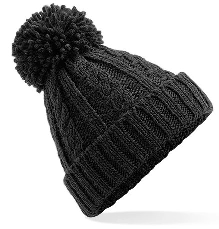 TearAway Label für einfaches Neulabeln, Schwerer Kabelstrick in Melange, Handgestricktes Griffgefühl, Einfarbige Bommel, Wärmendes Innenband aus Suprafleece®, Aufschlagdesign zur optimalen Verzierung
