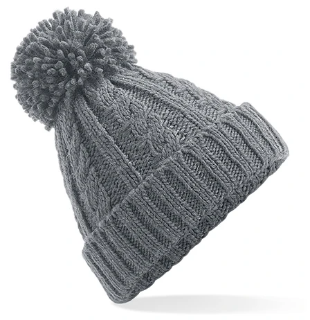 TearAway Label für einfaches Neulabeln, Schwerer Kabelstrick in Melange, Handgestricktes Griffgefühl, Einfarbige Bommel, Wärmendes Innenband aus Suprafleece®, Aufschlagdesign zur optimalen Verzierung