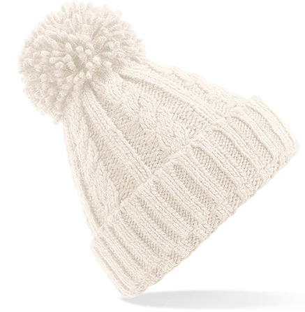 TearAway Label für einfaches Neulabeln, Schwerer Kabelstrick in Melange, Handgestricktes Griffgefühl, Einfarbige Bommel, Wärmendes Innenband aus Suprafleece®, Aufschlagdesign zur optimalen Verzierung