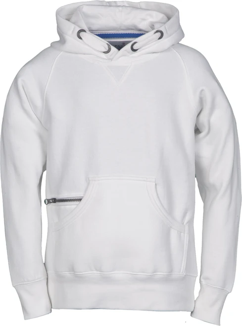 Kinder-Sweatjacke mit Raglanärmeln, durchgehendem, verdecktem 2-Wege-SBS-Reißverschluss mit Metallschieber, Kapuze mit zwei Nähten und weißem Kordelzug, Doppelösen aus Metall, Kängurutaschen mit Reißverschlusstäschchen, elastischem Feinripp an Ärmeln und Taille, verstärkten Nähten