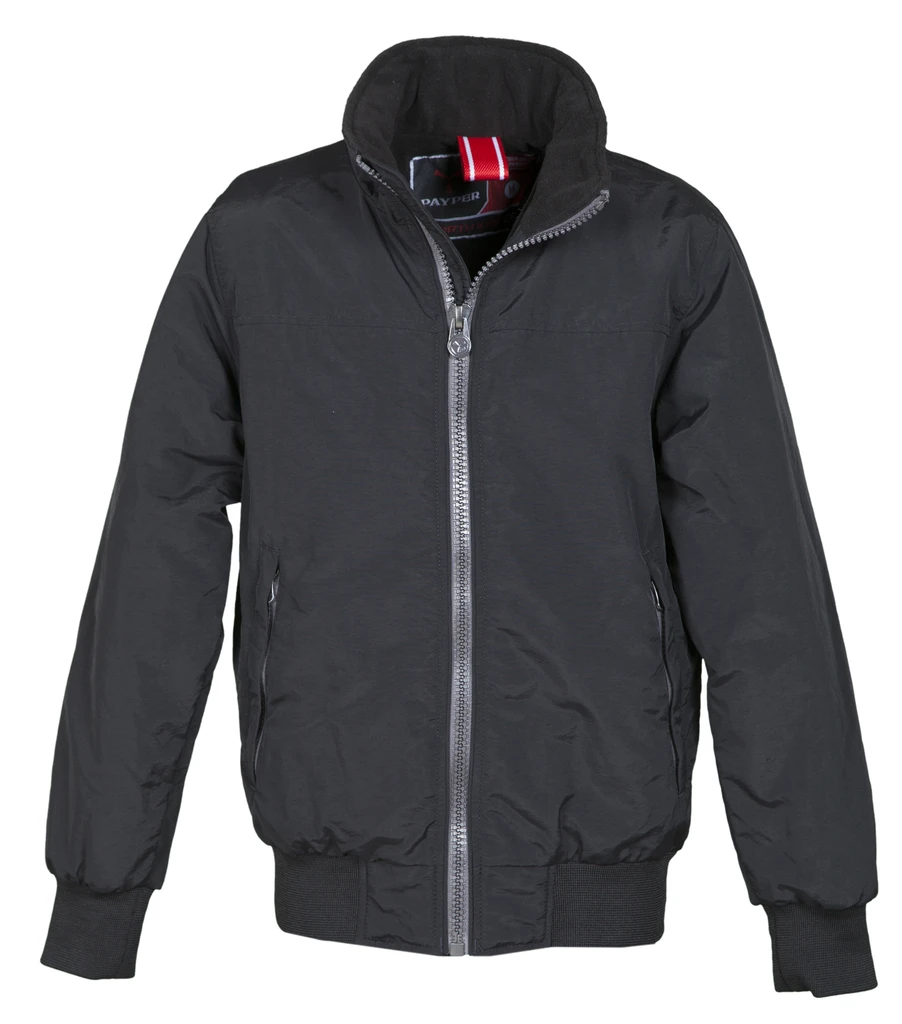 Kinder-Jacke mit verdecktem Reißverschluss aus Kunststoff mit Metallschieber, Rippstrickbündchen an Ärmeln und Taille, zwei Außentaschen mit verdecktem Reißverschluss;