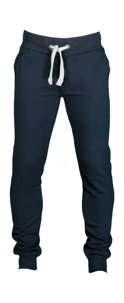 Sweathose mit elastischem Bund aus Rippstrick an der Taille und am Fußgelenk, verdecktem Reißverschluss, weißem Kordelzug mit Nähten in Kontrastfarbe und Metallösen, zwei Vordertaschen mit Rippstricksaum und einer Gesäßtasche, Patte mit Reißverschluss und verstärkten Nähten