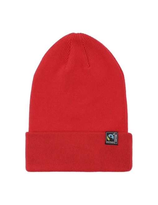 Material: 100% Bio-Fairtrade-Baumwolle, 1x1 Rippenstrick; Gewicht: 480 g/m²; Dehnbarer 1X1 rib knit, 2-lagig. Beanie mit bündchen, sichtbares Fairtrade-Flaggenetikett an der bündchen; Zertifikate: OEKO-TEX® STANDARD 100, 100% CERTIFIED ORGANIC COTTON, FAIR WEAR, EU ECOLABEL, SA8000, NEUTRAL® RESPONSIBILITY