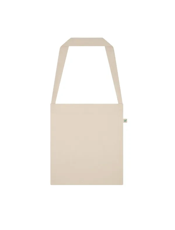 Ein dezent platziertes Earth Positive®-Flaggenlabel an der Seitennaht unterstreicht die ethischen und biologischen Produktionsstandards der Tasche. Dieses zurückhaltende Branding-Element bekräftigt ihre Umweltfreundlichkeit und sorgt gleichzeitig für ein klares, dekorationsfreundliches Erscheinungsbild.