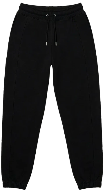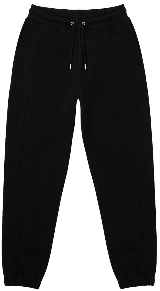 Der Stoff besteht aus robustem Loopback-Fleece mit einer Grammatur von 300 g/m² und bietet Struktur, Strapazierfähigkeit und lange Lebensdauer. Markante Seiteneinsätze folgen der Kontur des Beins, um die Barrel-Form zu betonen und gleichzeitig eine subtile technische Note zu verleihen. Ein farblich abgestimmter gerippter Bund mit funktionalen Kordelzügen, verstärkten Ösen und Metallkappen sorgt für Verstellbarkeit und einen sicheren Sitz.