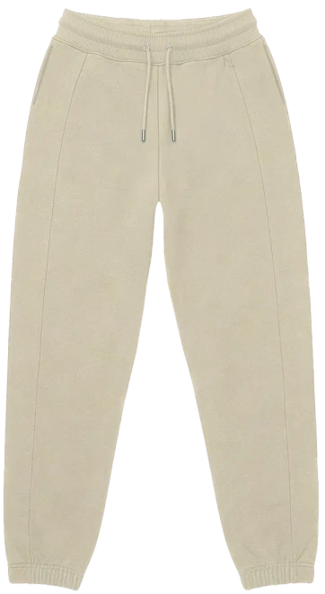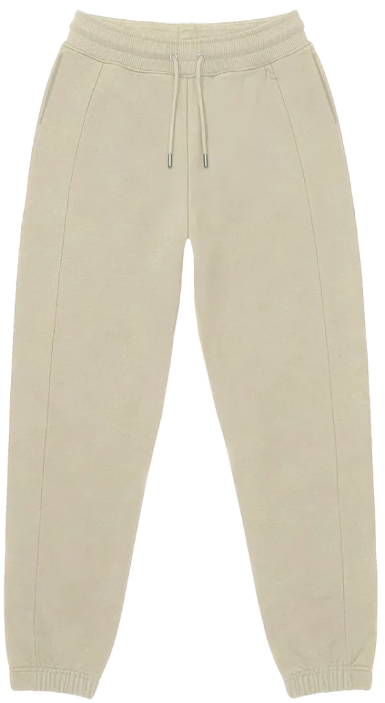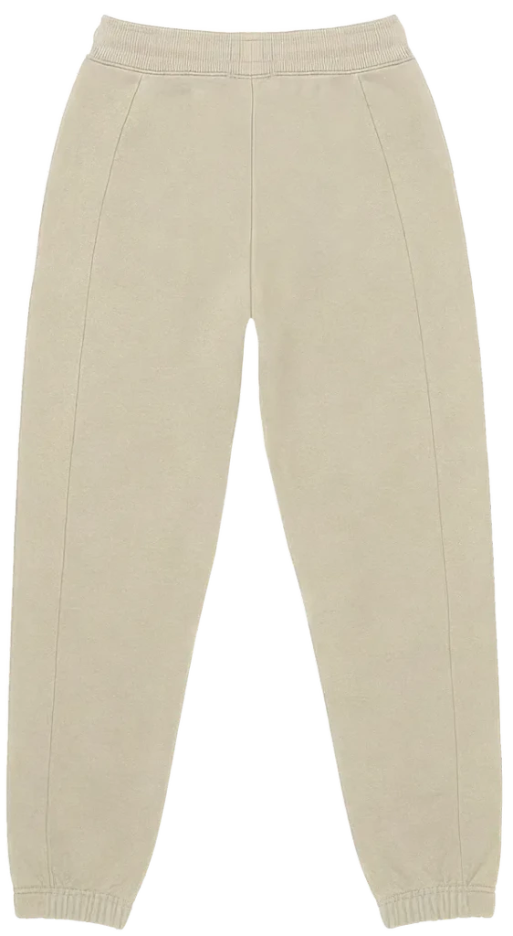 Der Stoff besteht aus robustem Loopback-Fleece mit einer Grammatur von 300 g/m² und bietet Struktur, Strapazierfähigkeit und lange Lebensdauer. Markante Seiteneinsätze folgen der Kontur des Beins, um die Barrel-Form zu betonen und gleichzeitig eine subtile technische Note zu verleihen. Ein farblich abgestimmter gerippter Bund mit funktionalen Kordelzügen, verstärkten Ösen und Metallkappen sorgt für Verstellbarkeit und einen sicheren Sitz.