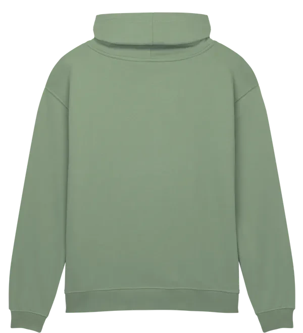 Der Stoff besteht aus schwerer Bio-Baumwolle mit einer Grammatur von 300 g/m² und ist mit einer weichen, wildlederartigen Oberfläche versehen, die für ein besonders hochwertiges Tragegefühl sorgt. Der markante Trichterkragen spendet zusätzliche Wärme und sorgt gleichzeitig für einen strukturierten, modischen Look.