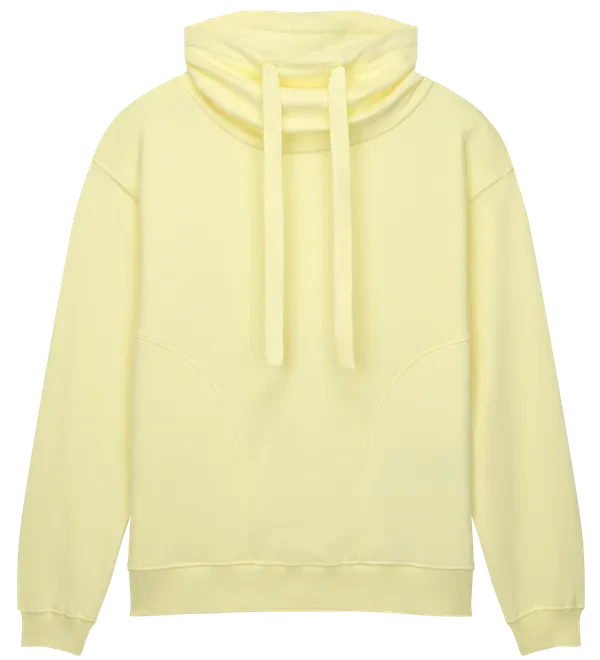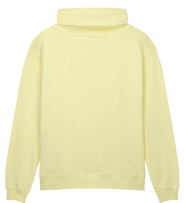 Der Stoff besteht aus schwerer Bio-Baumwolle mit einer Grammatur von 300 g/m² und ist mit einer weichen, wildlederartigen Oberfläche versehen, die für ein besonders hochwertiges Tragegefühl sorgt. Der markante Trichterkragen spendet zusätzliche Wärme und sorgt gleichzeitig für einen strukturierten, modischen Look.
