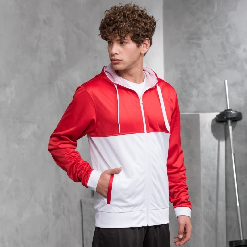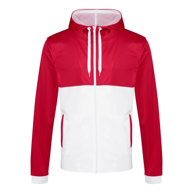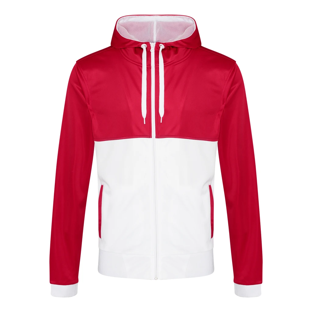 Modern contrast panelling – top yoke, sleeves and hood are one colour, and bottom half of body, cuffs, hem, draw cords and hood mesh are contrast colour.