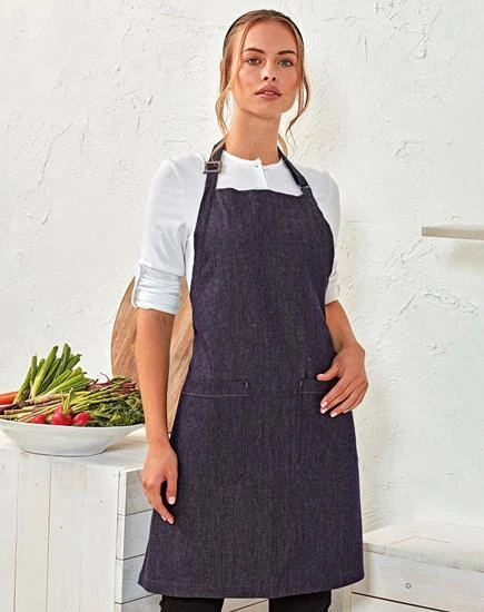 Eine atemberaubende Jeansschürze aus 100 % Bio-Fairtrade-Baumwolle. Zwei praktische aufgesetzte Taschen sind mit Kontrastnähten versehen und die Gesamtlänge der Schürze kann mit einer Schnalle am Nackenband angepasst werden.