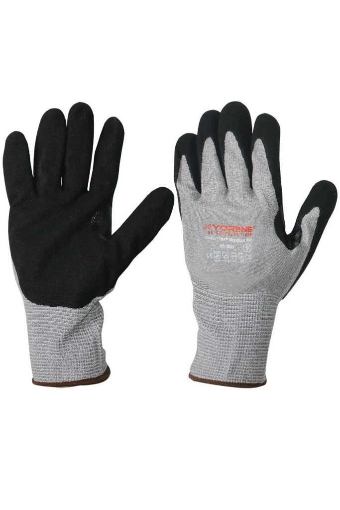Schnittschutzhandschuhe KYORENE liner 13G, belüfteter Handrücken, Strickbündchen, Nitrilbeschichtung ; Eigenschaften: unempfindlich; Stärken: Komfort, Griff, Tastgefühl, Präzision, schnittfest; Einsatzbereiche: Handhabung und Montage von scharfkantigen, trockenen oder leicht öligen Werkstücken