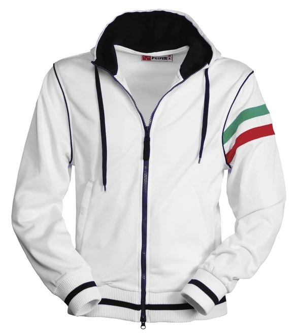 Damen-Kapuzenpullover mit durchgehendem, kontrastierendem Kunststoffreißverschluss mit doppeltem Metallzug. Kontrastierende Kapuze und Tunnelzug, kontrastierende Stretch-Rippbündchen und -saum, kontrastierende Bündchen, Ziernähte (Farben der Flagge) auf dem linken Ärmel, 2 Taschen mit Reißverschluss, verstärkte Nähte und Pique-Gewebe für mehr Atmungsaktivität
